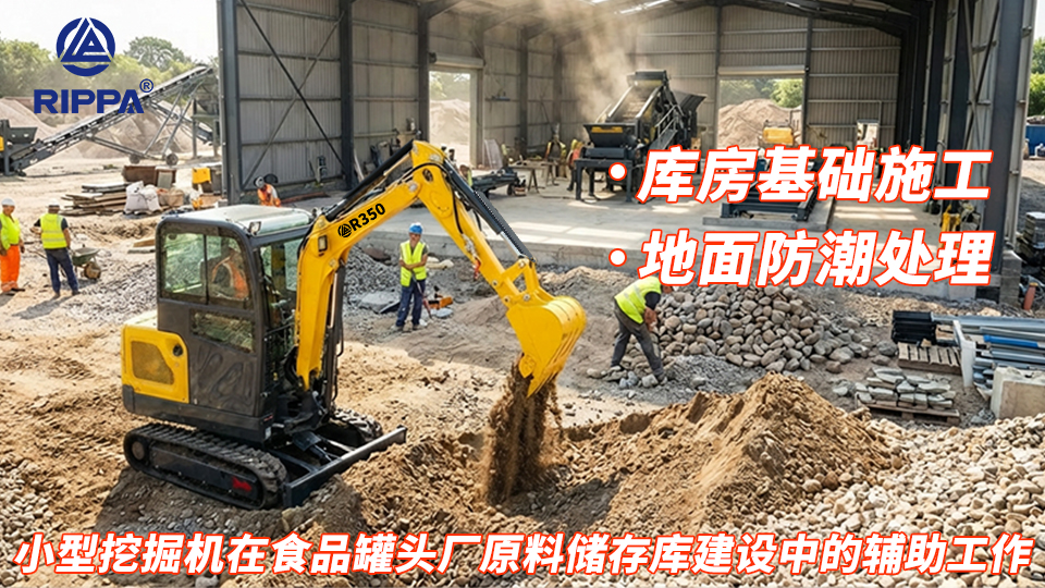 立派小挖机助攻食品罐头厂!储存库基础+防潮处理双重保障 食品罐头厂原料储存库是保障原料新鲜度、防止变质损耗的核心设施,…